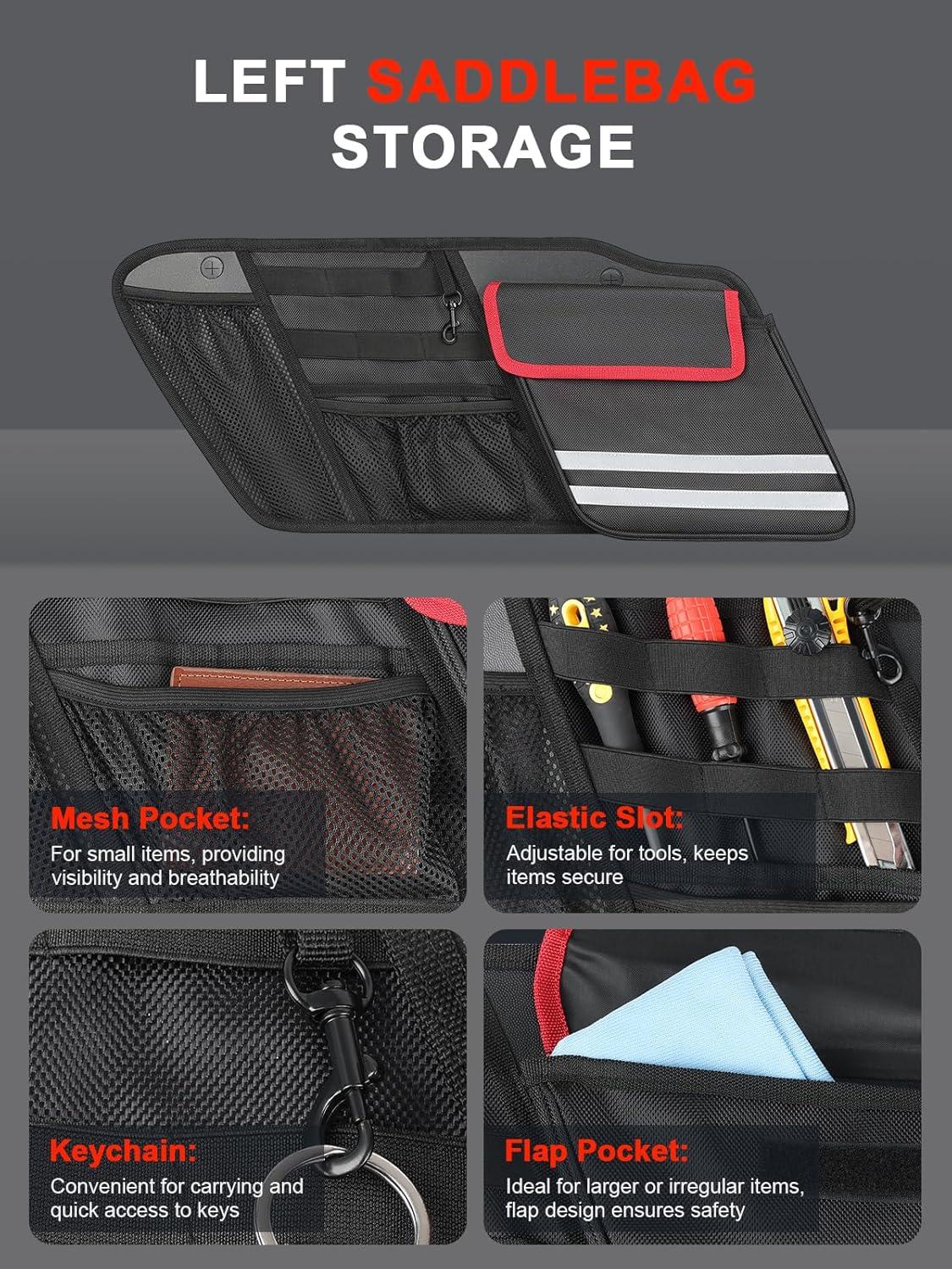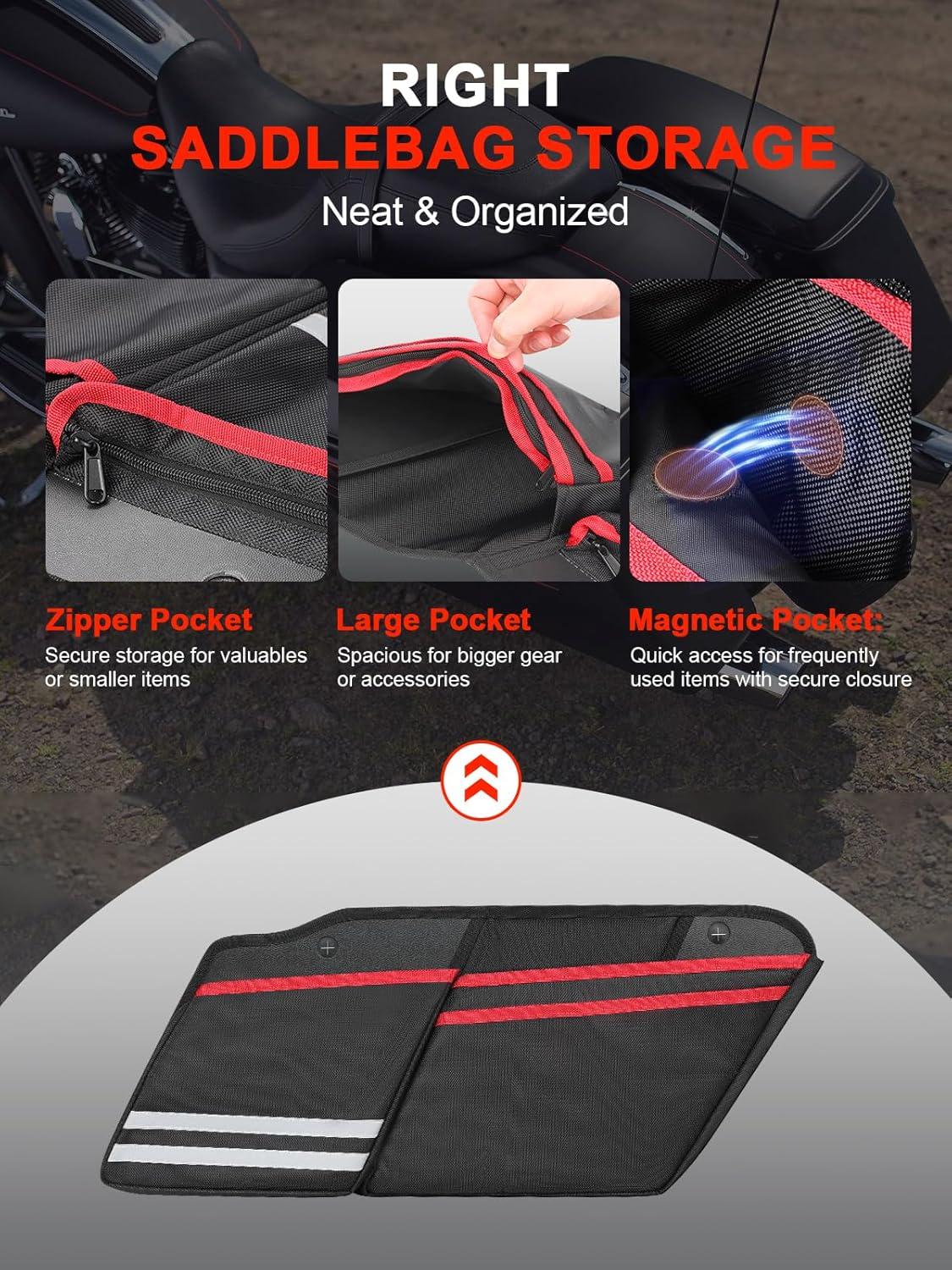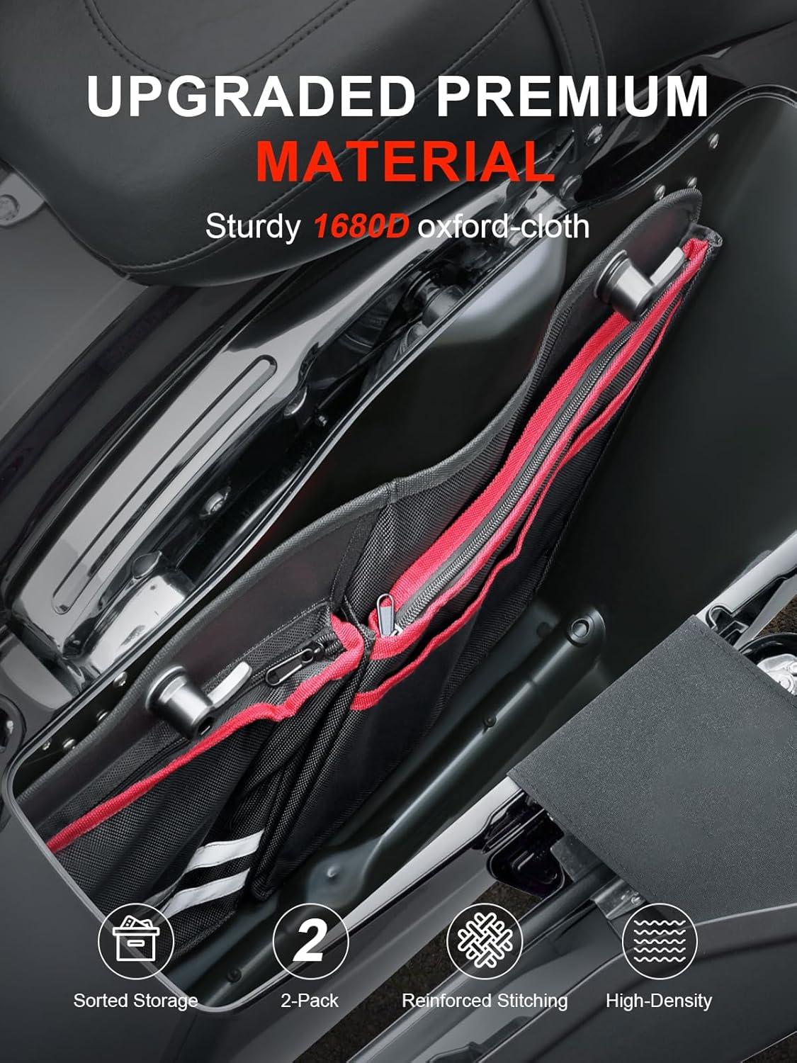 Fitment: SKYJDM motorcycle saddlebag organizers compatible with 2014-2025 Harley Davidson Touring Street Glide, Road King, Road Glide, and Electra Glide. Fits seamlessly into hard saddlebags, maximizing storage without taking up extra space. Ideal for keeping your gear secure, organized, and easily accessible on long rides
