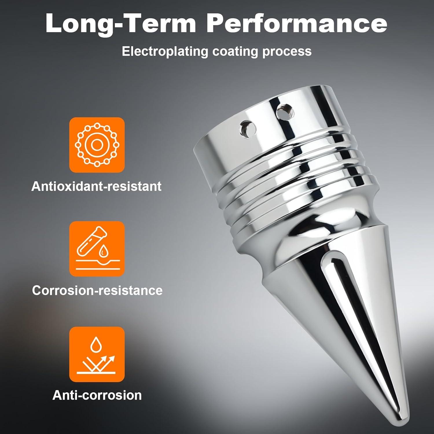 Long Life: The surface plating coating improves the spike front axle caps corrosion resistance, heat resistance and oxidation prevention, resulting in a sturdy and rust resistant performance