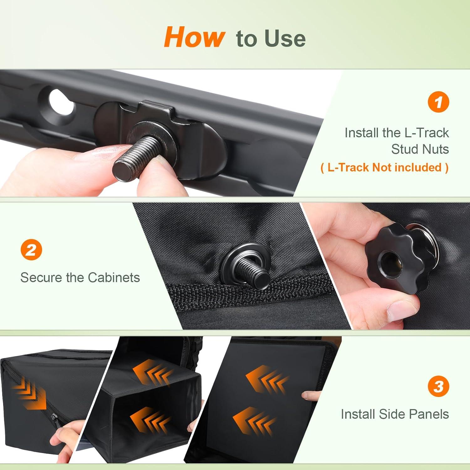 User-Friendly Installation: The cabinet is easy to install on the already secured L-track (not included) using the L-track stud nuts. And the storage cabinet easily disassembles and folds flat for convenient storage when not in use