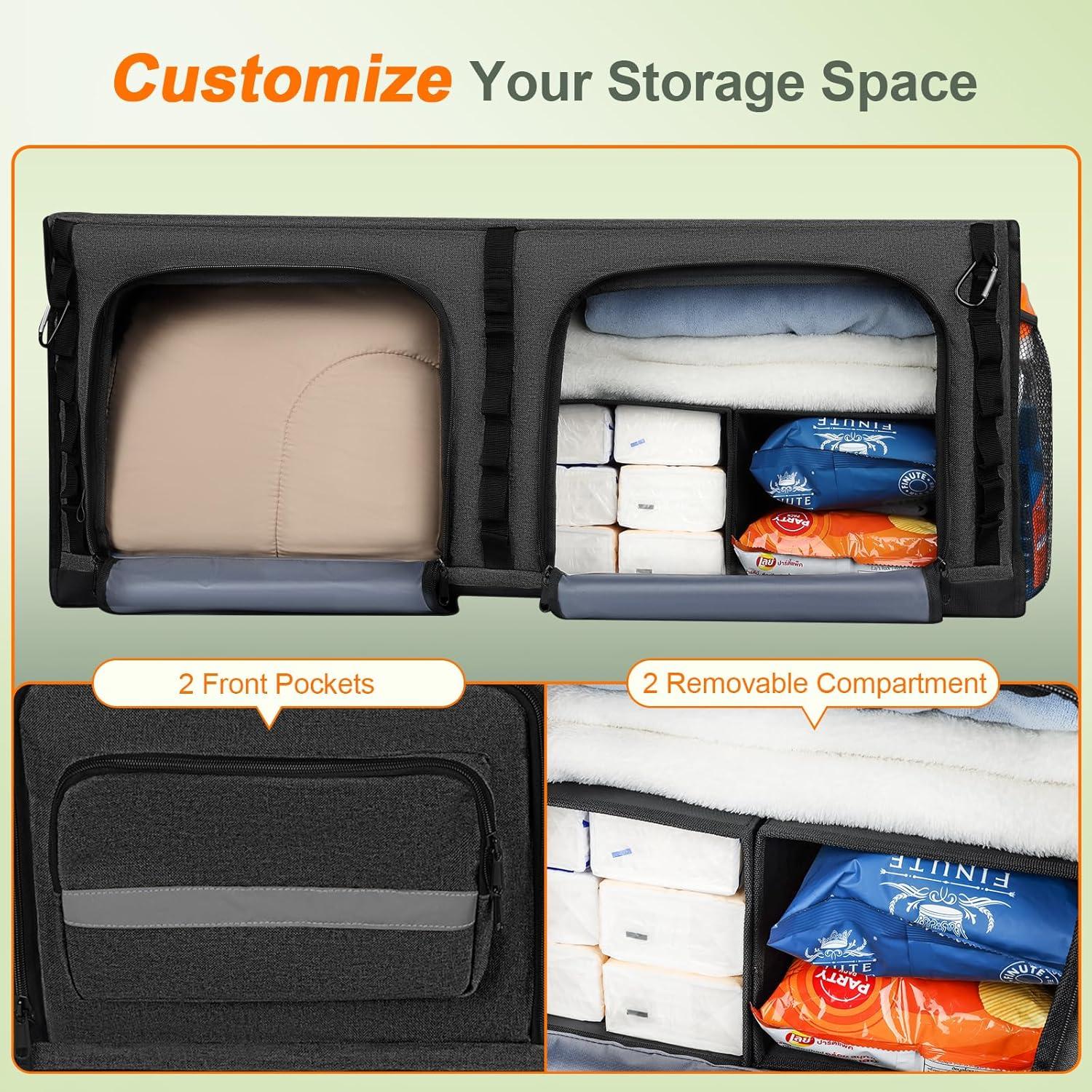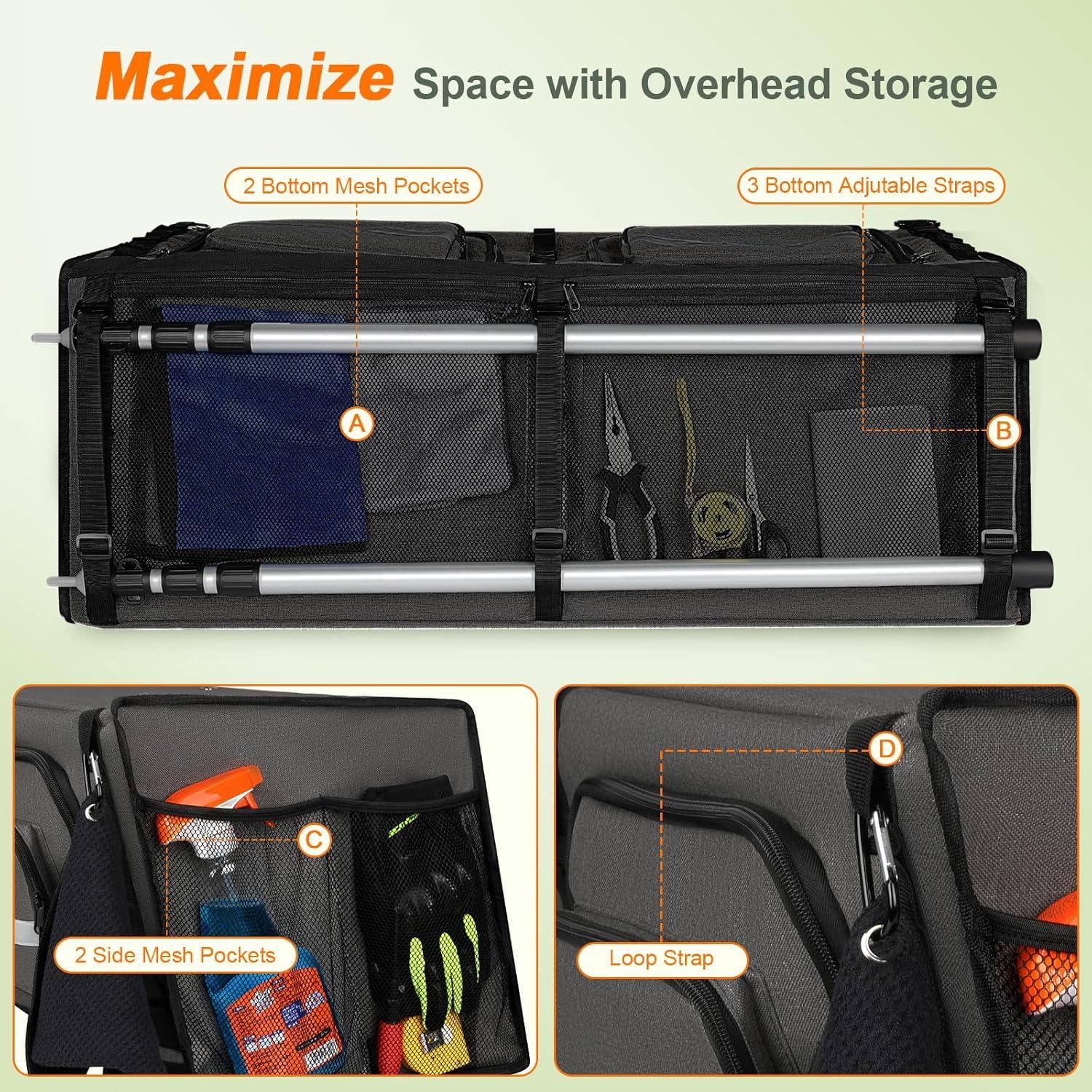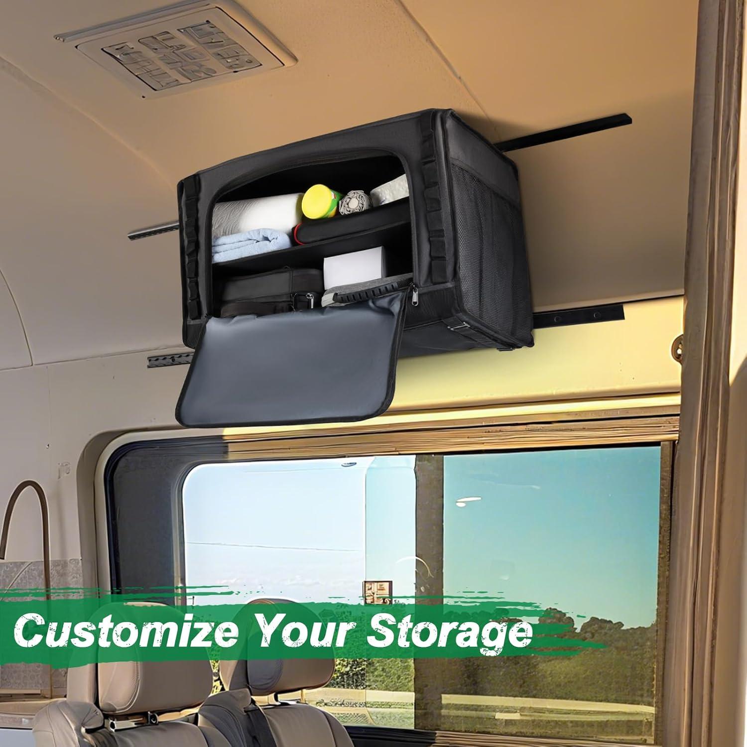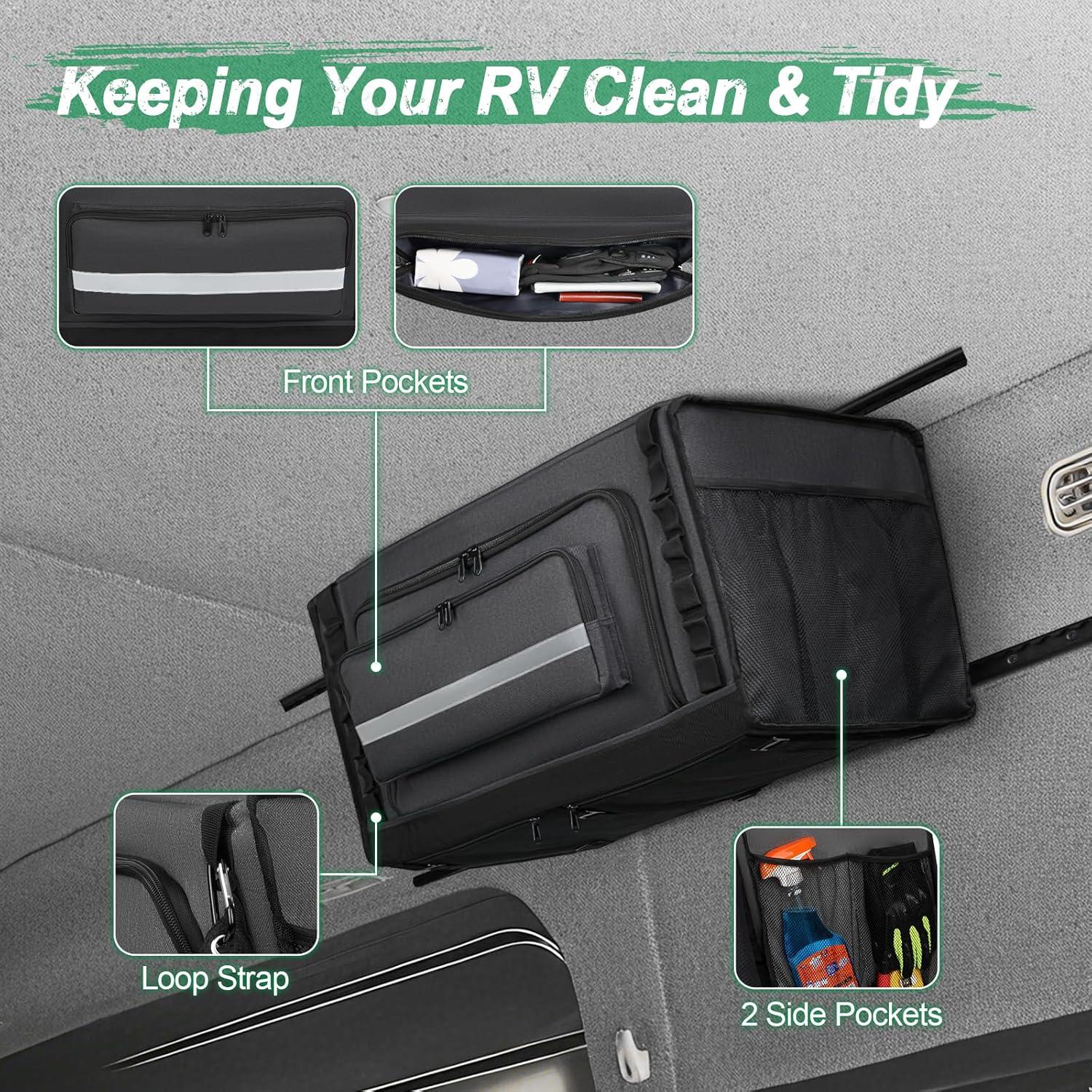 Overhead Storage Organization: Our overhead soft-sided storage cabinet features a lightweight yet durable construction that is not easily deformed, ensuring convenient and long-lasting use. It is suitable for providing more storage space in your RV. The spacious design keeps your belongings neatly tucked away and organized.
