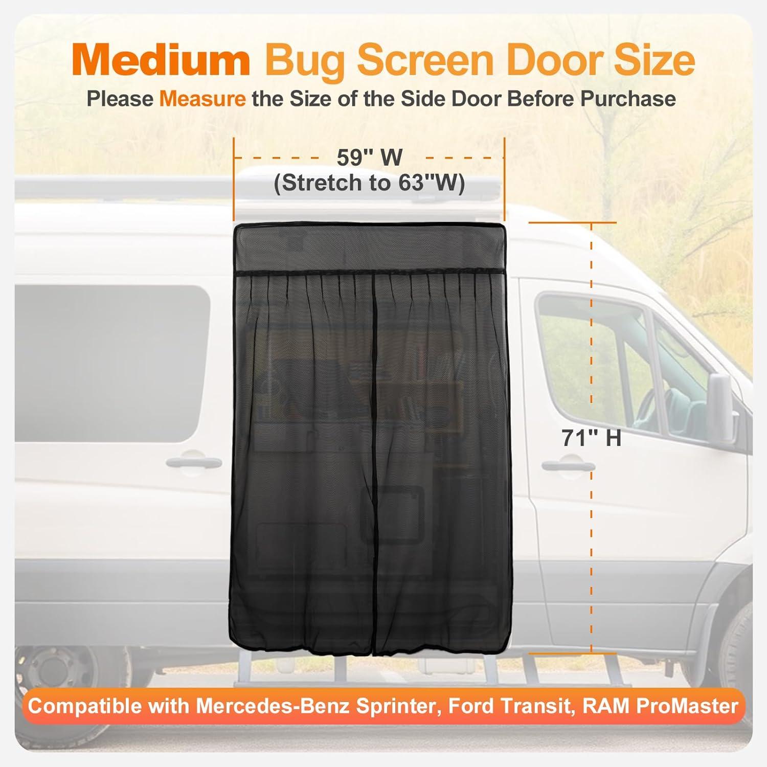 59"H x 43"W Sliding Door Van Bug Screen, Magnetic Closure Van Screen Mesh Curtains, Side Door Camping Mosquito Net, Compatible with Mercedes-Benz Metris, Ford Transit Connect, Campervan, Small(Medium 71"H x 59"W)