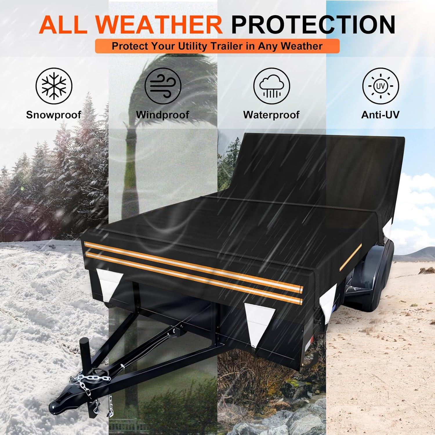 Sturdy Material: The trailer cover is made from 600D oxford-fabric, which is waterproof, sturdy, strong and tear-resistant. It can protects your trailer from rain, snow, wind and scratches, and built to withstand harsh weather conditions, preserving the appearance and lifespan of your trailer