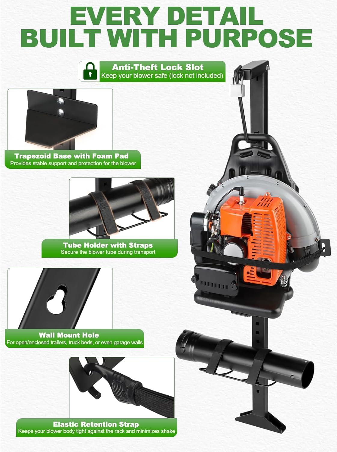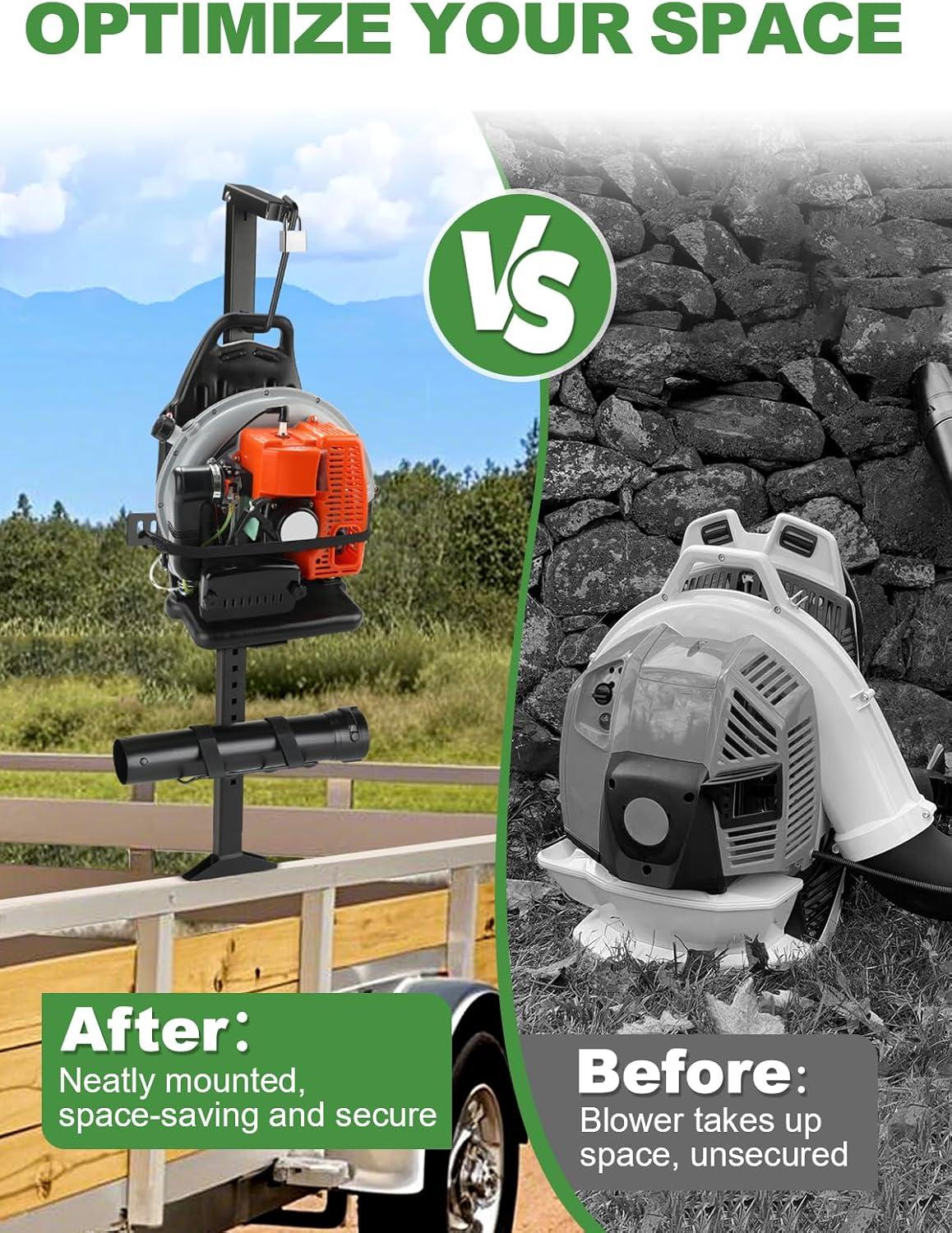 Quick Access & Clutter-Free Storage: Keep your backpack blower always within reach. This trailer blower rack creates a dedicated space for your equipment, allowing for fast loading and unloading—no more searching or tangled tools. It frees up valuable truck space and keeps your work area neat and organized, boosting your landscaping efficiency