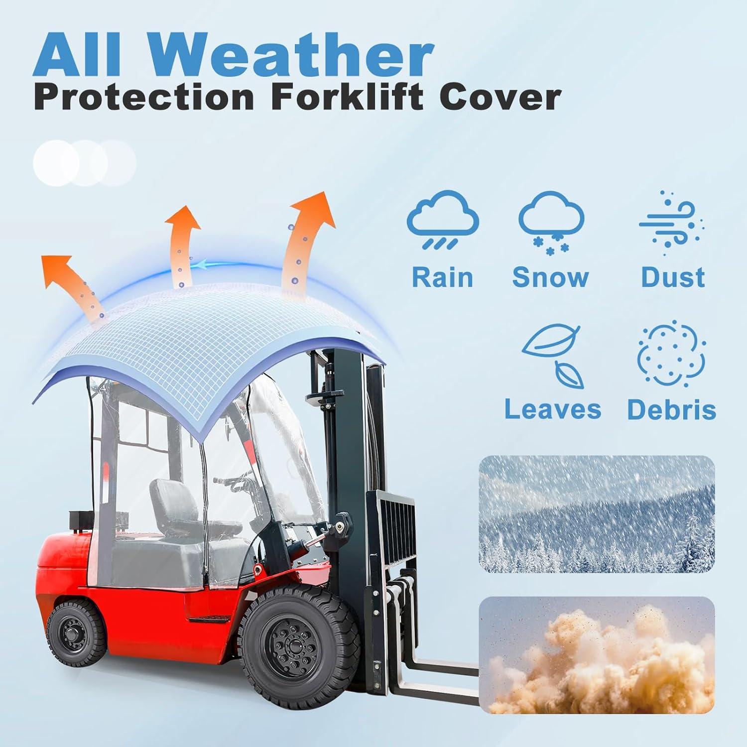 Clear Visibility: Made from sturdy 600D oxford-fabric and high-transparency PVC films, this forklift cover is waterproof. It offers excellent visibility and durability, protecting your forklift from rain, snow, and sunlight