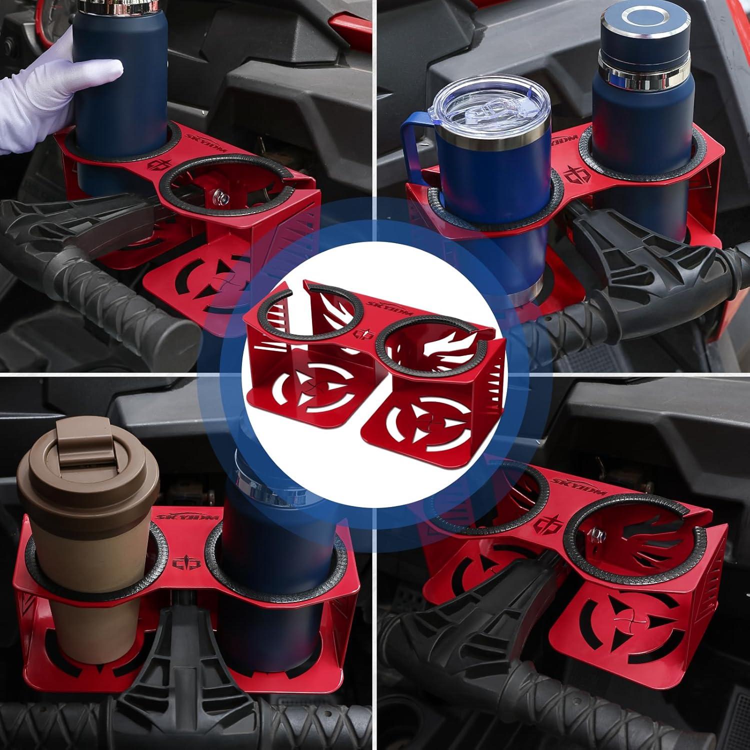 Cup Holder for Grab Bar, Passenger Grab Handle Drink Holder, UTV Cupholder Compatible with Polaris RZR XP 1000/XP Turbo/800/900 2008-2023, Fits Large Bottles & Mugs in 18-40 oz, Red(Red)