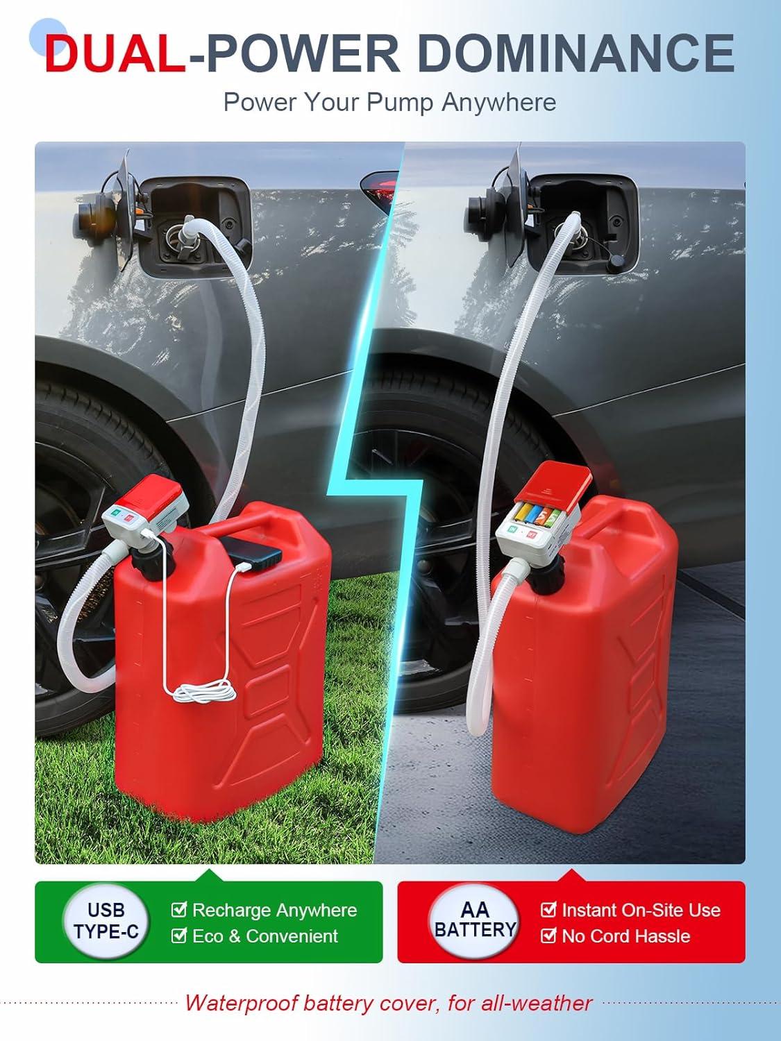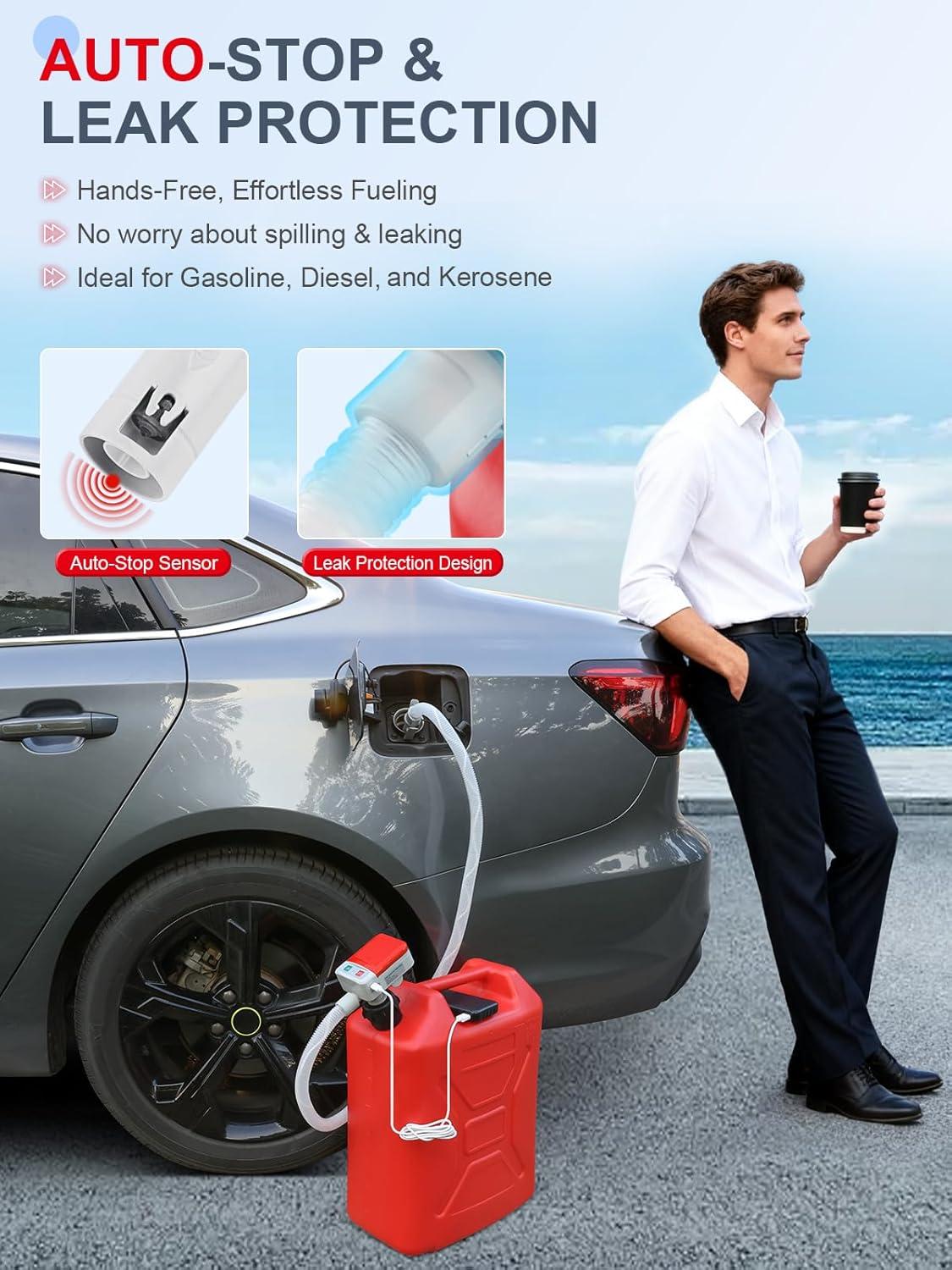 Effortless Fuel Transfer: Say goodbye to heavy lifting. Our fuel transfer pump eliminates the need to lift or carry heavy fuel cans, making fueling safer and more convenient. Enjoy effortless fueling with just the push of a button
