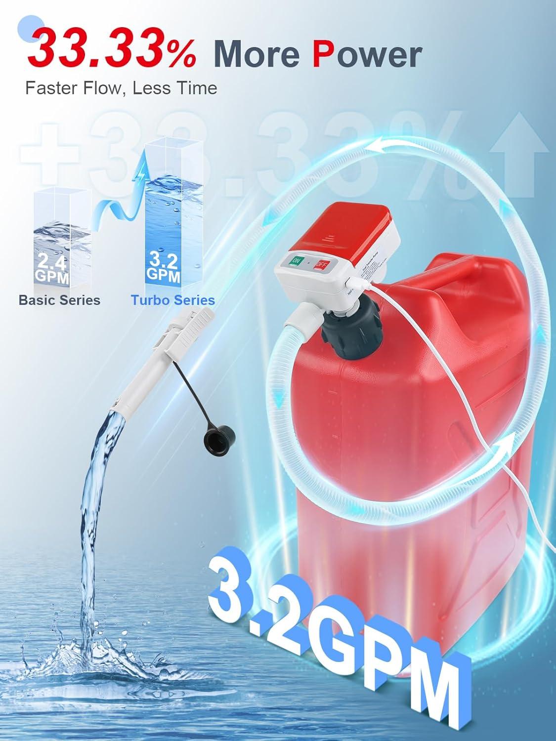 Faster Fueling with 3.2 GPM: Experience faster fuel transfer with the upgraded 3.2 GPM flow rate. This enhanced performance reduces fueling time by up to 33%, making every transfer quicker and more efficient