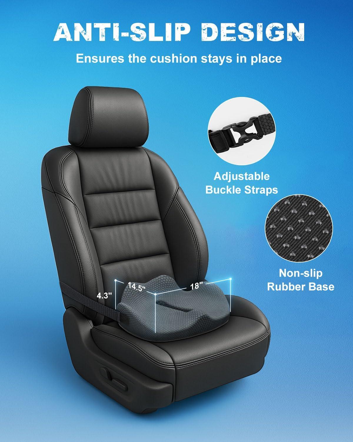 Pain Relief & Support: 3D-honeycomb TPE gel provides extra cushioning and enhanced support. It evenly distributes weight, reduces vibration, and relieves numbness from long drives