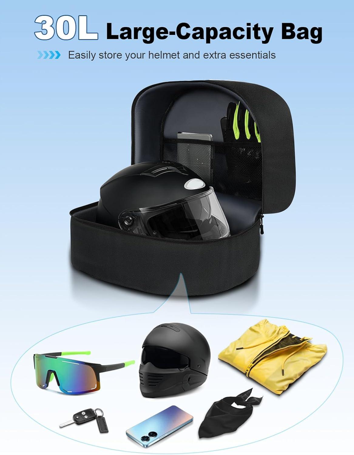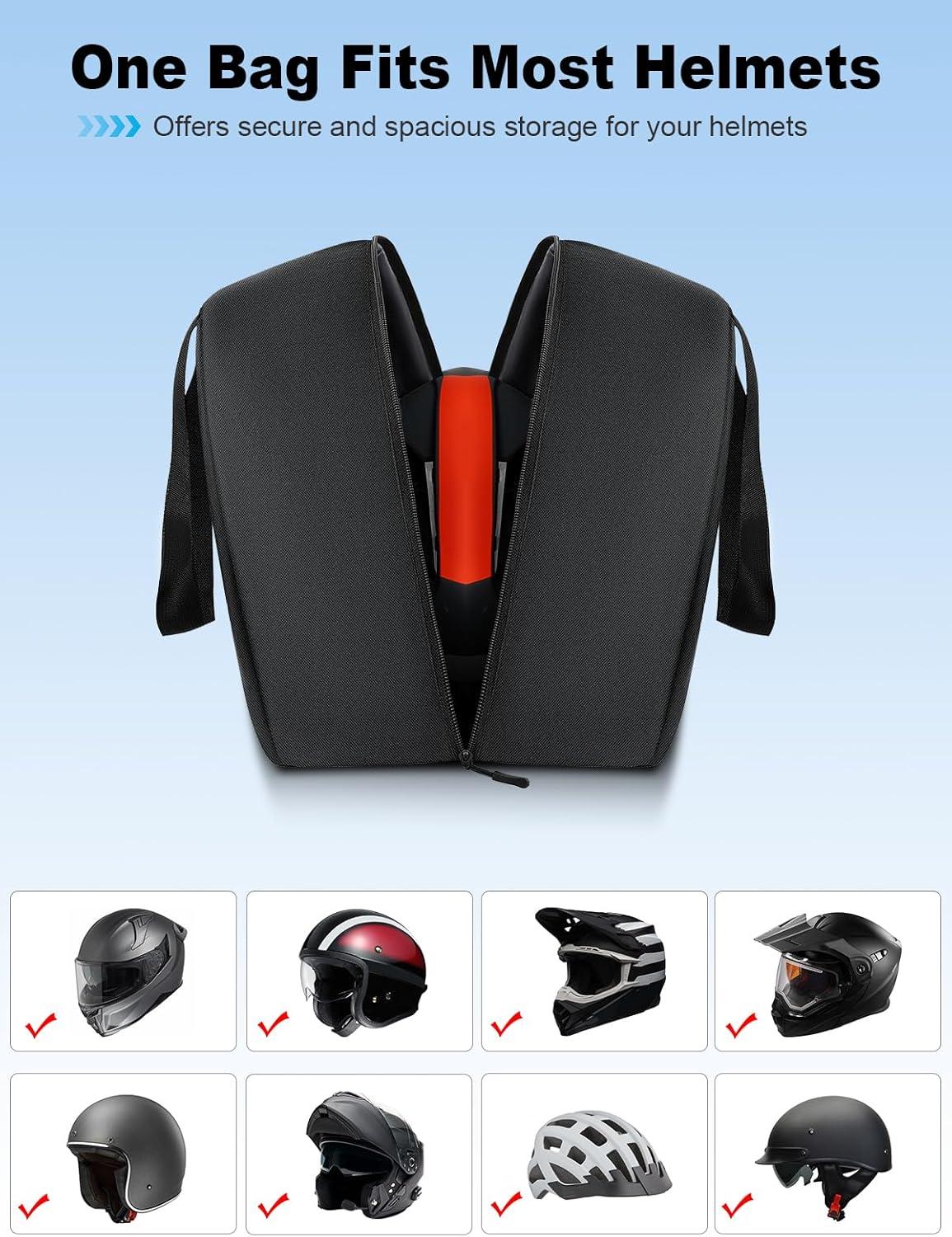 Waterproof & Tearproof: Built with premium 600D oxford-fabric, this motorcycle helmet bag is highly abrasion-resistant, tear-resistant, and waterproof, protecting your helmet from daily wear and tear. The strong anti-wrinkle elasticity ensures a lightweight and sleek design without compromising durability