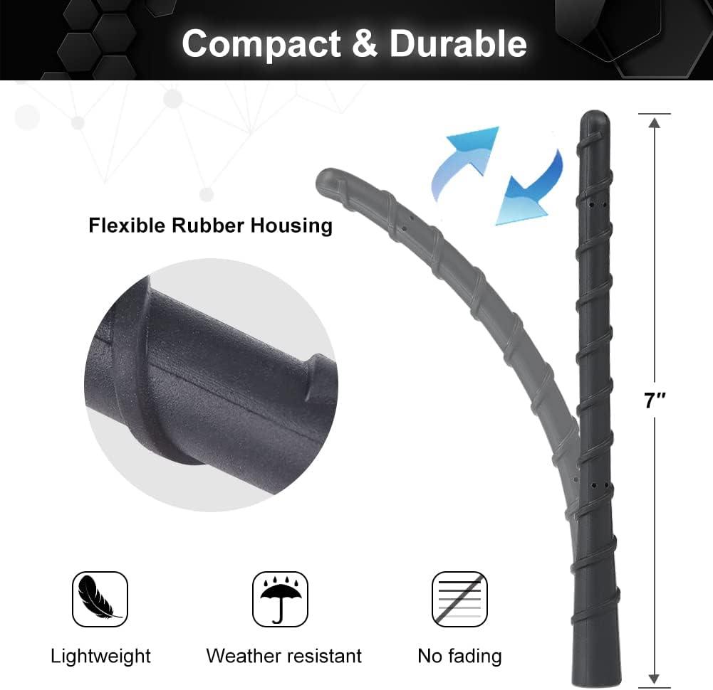 Low Profile Look – Stylish spiral design with flexible rubber exterior construction. By replacing your long metal shaft antenna, the 7″ antenna makes your motorcycle look more steady