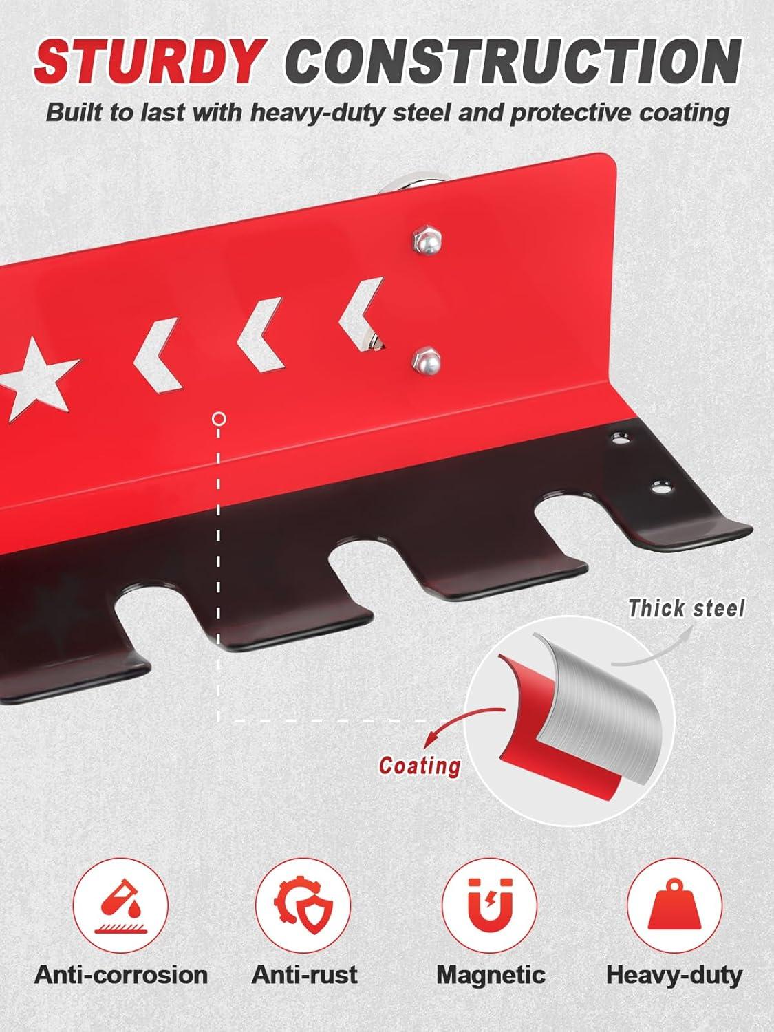 Flexible Mounting Methods: Equipped with four high-strength magnets (each rated for 99 lbs of pull), the rack can be attached to any metal surface in seconds. Pre-drilled holes and included bolts also allow for permanent wall installation to suit your workspace needs