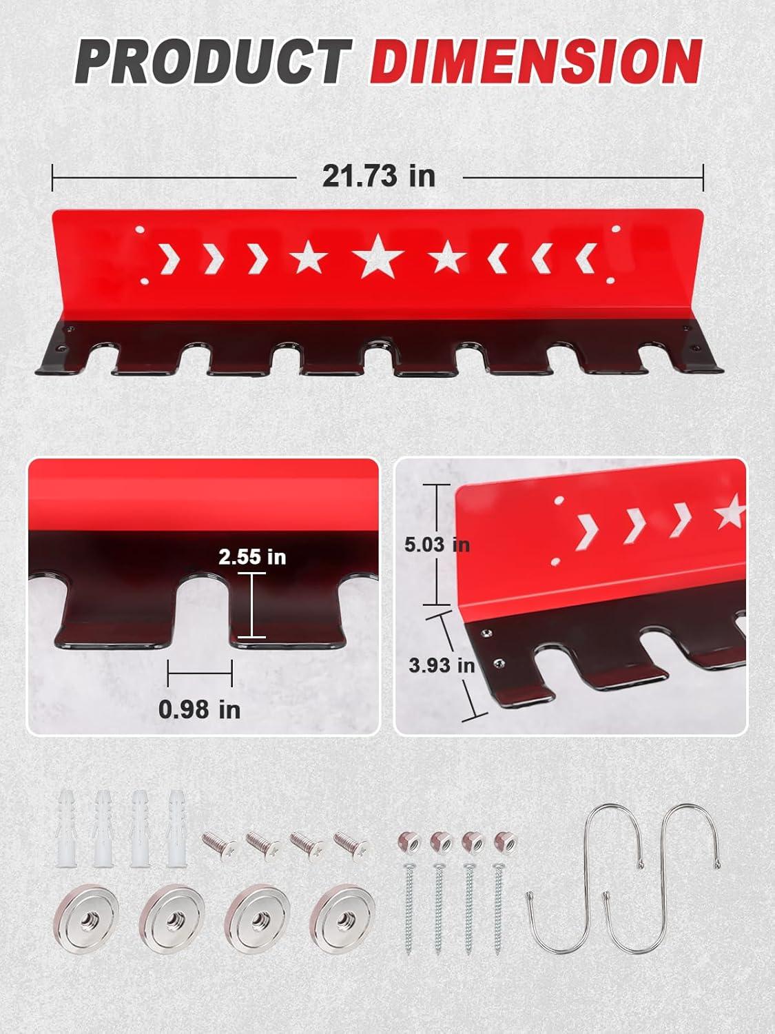 Extra Storage Hooks: Both ends feature mounting holes for the included S-hooks, ideal for hanging hoses, gloves, tape, or other essentials. More tools, one rack, zero clutter