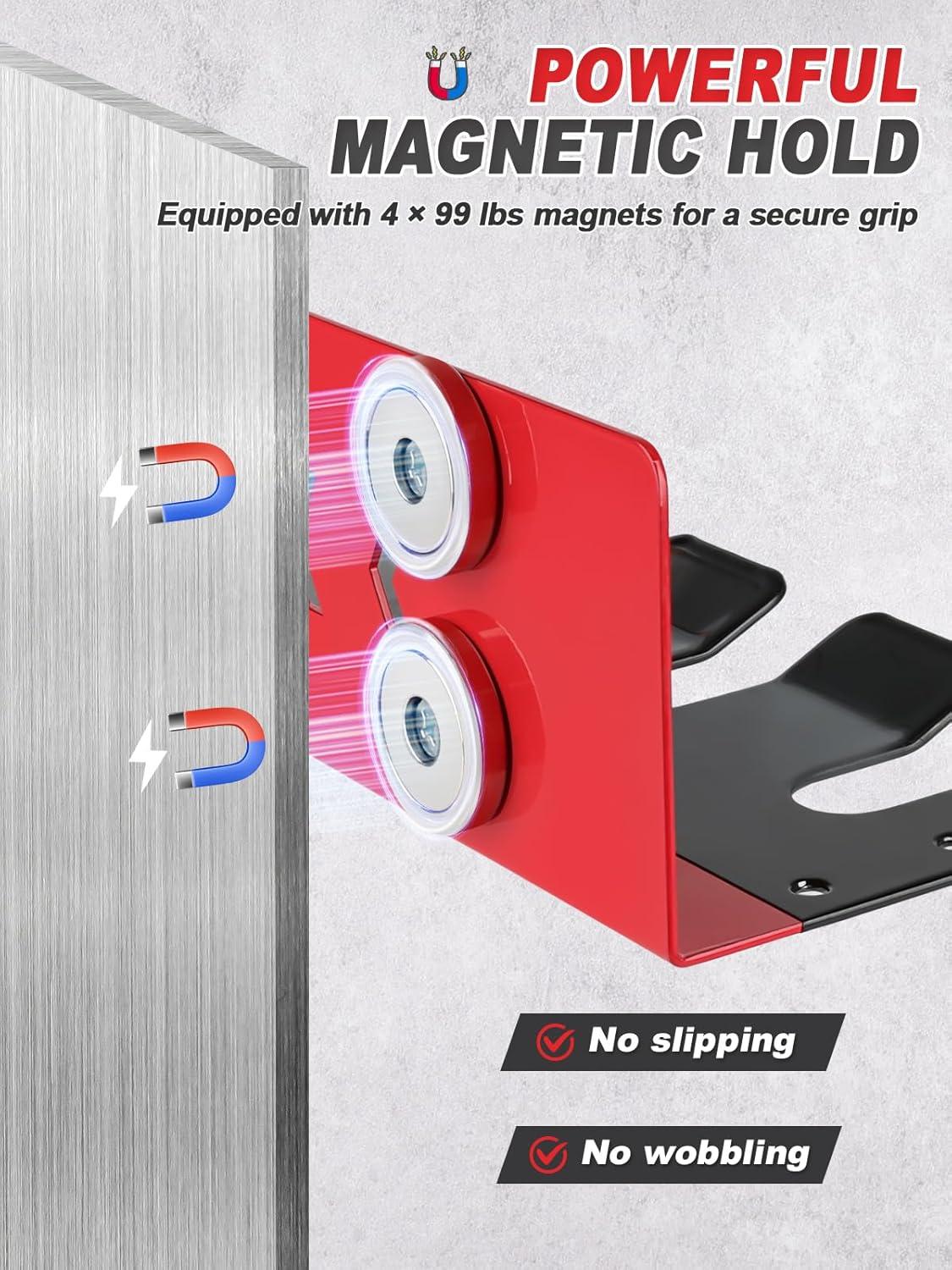 Heavy-Duty Load Capacity: Made of thick powder-coated steel and supported by strong magnetic force, this holder supports up to 10kg without bending or sliding. A solid choice for auto body shops, garages and daily use