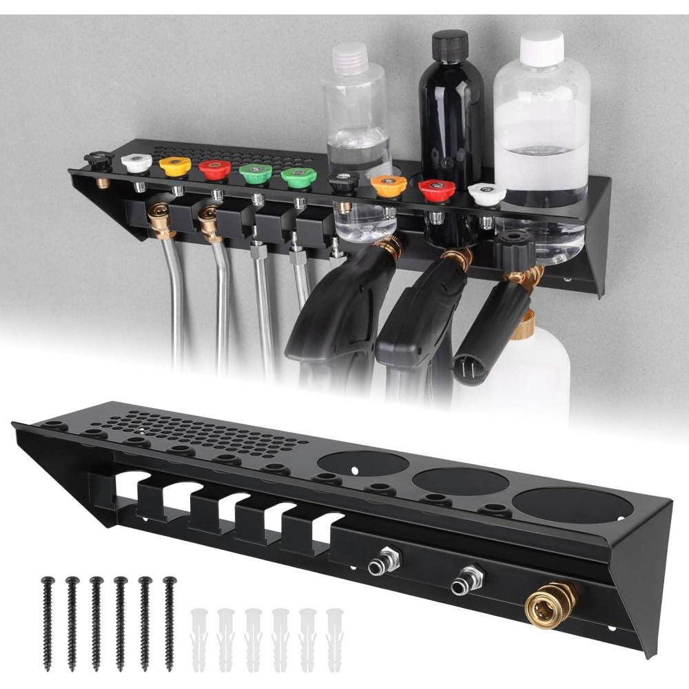 imagePressure Washer Gun ampamp Foam Cannon Holder with 14 Inch Quick Connector WallMounted Nozzle Tip ampamp Extension Wand Organizer for Pressure Washer Parts ampamp Accessories