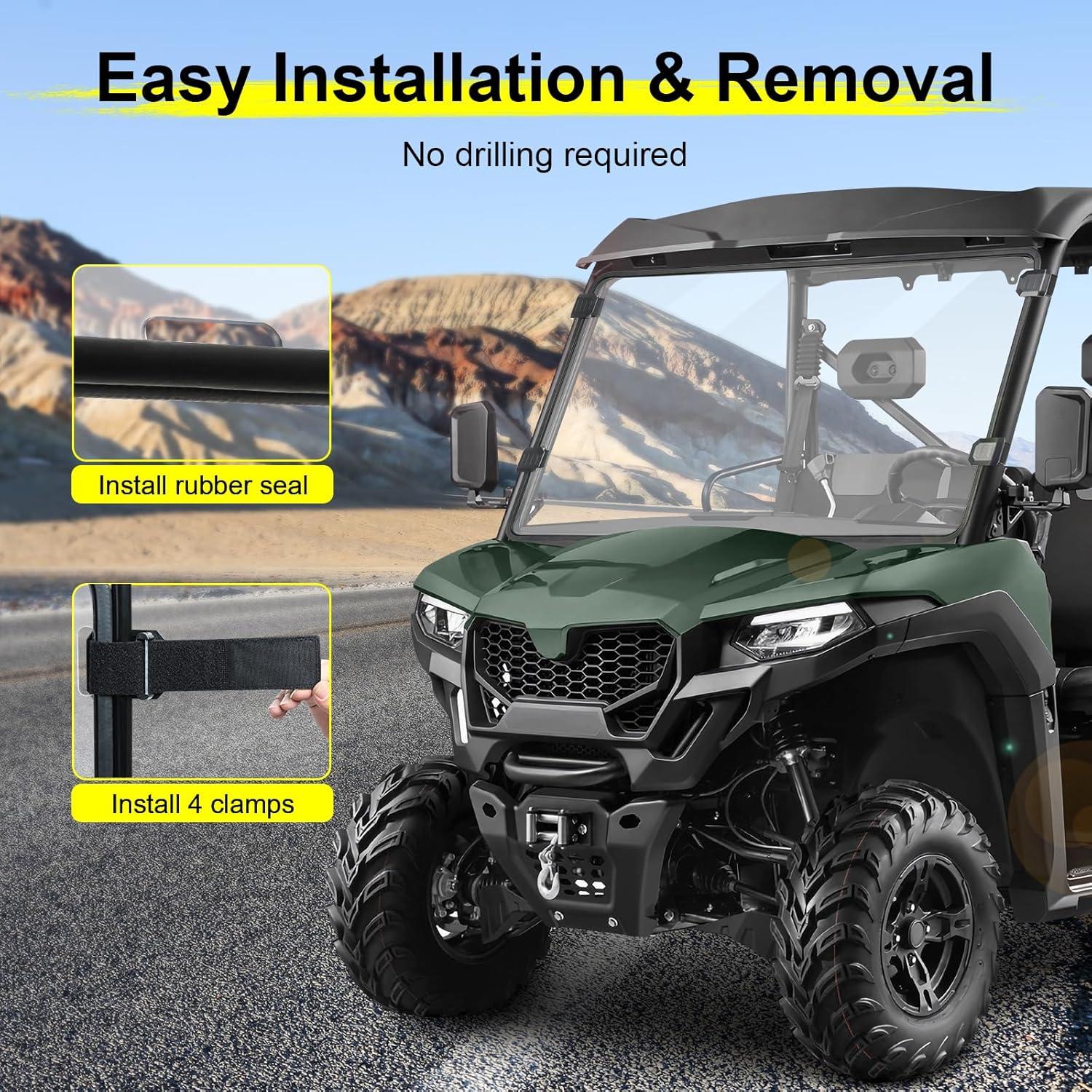 Comprehensive Protection: Provides the protection your UTV deserves by blocking rain, snow, leaves, and dust. The full windshield keeps your cabin clean and safe, while the noise-reducing rubber seal minimizes vibrations and squeaks, allowing you to enjoy a quieter, smoother ride