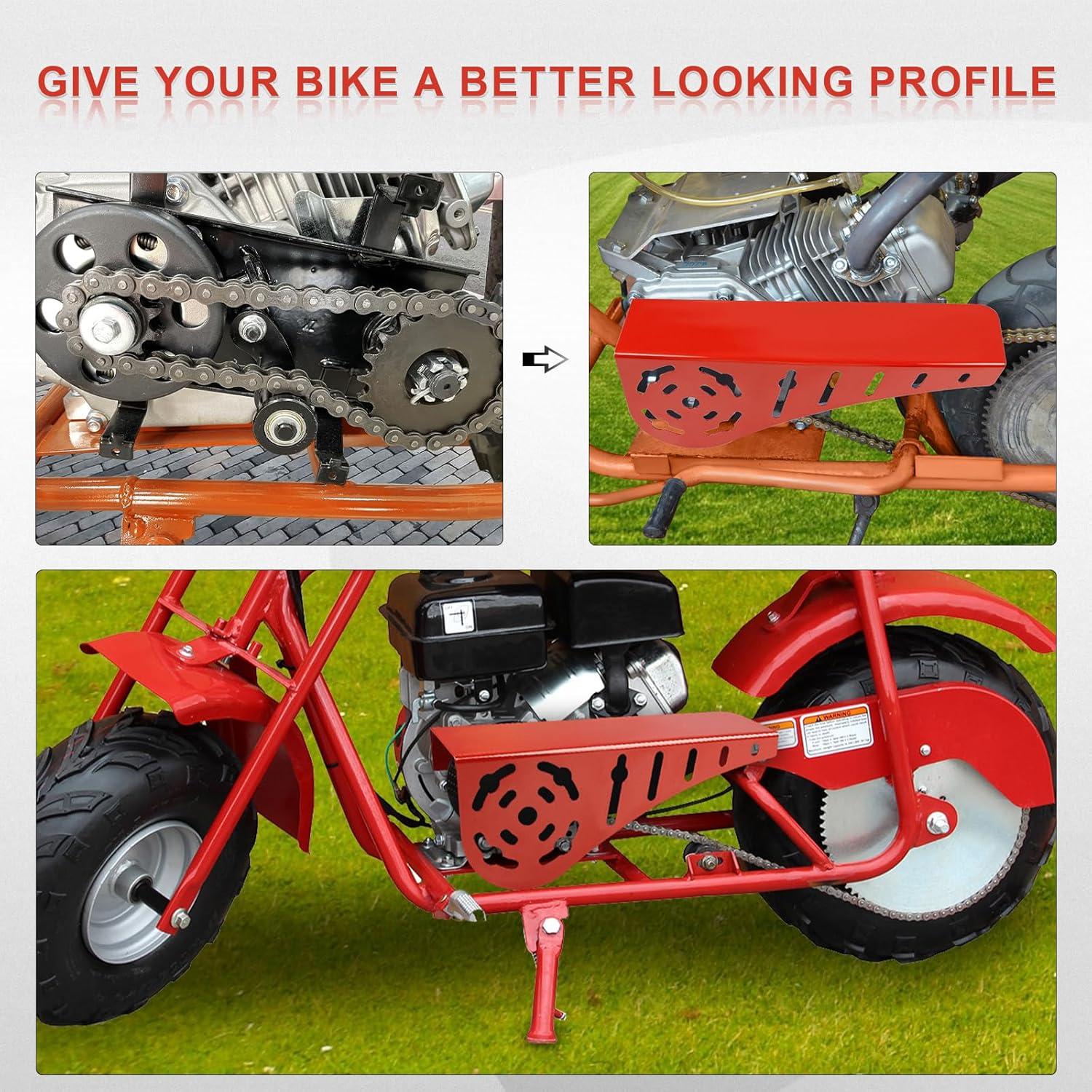Fitment:The chain clutch guard cover is 13″L*4.5″W*3″D. Mini bike chain guard is compatible with most mini bikes featuring 5-7hp Predator Honda Clone Tecumseh Briggs & Stratton engines