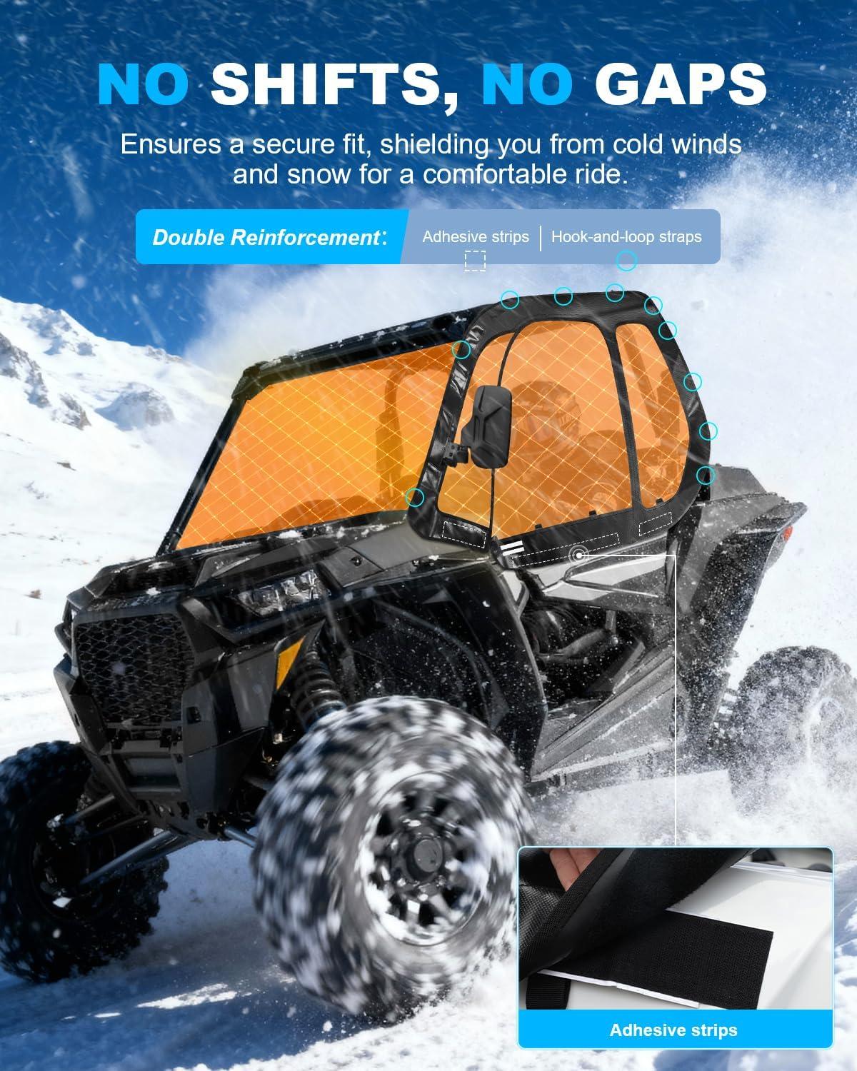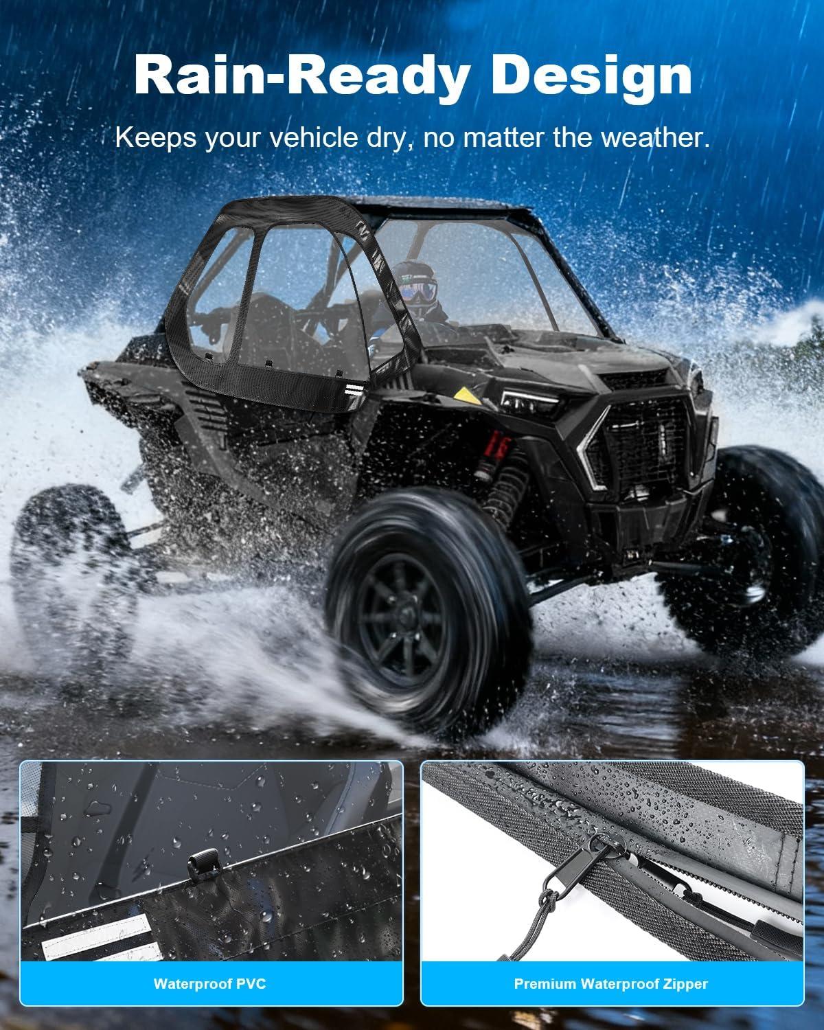 Soft Upper Doors with Side Mirror Cutout Compatible with Polaris RZR XP 1000 / XP Turbo 2-Seater 2014-2023 | Waterproof & Enhanced Vision for Max Durability