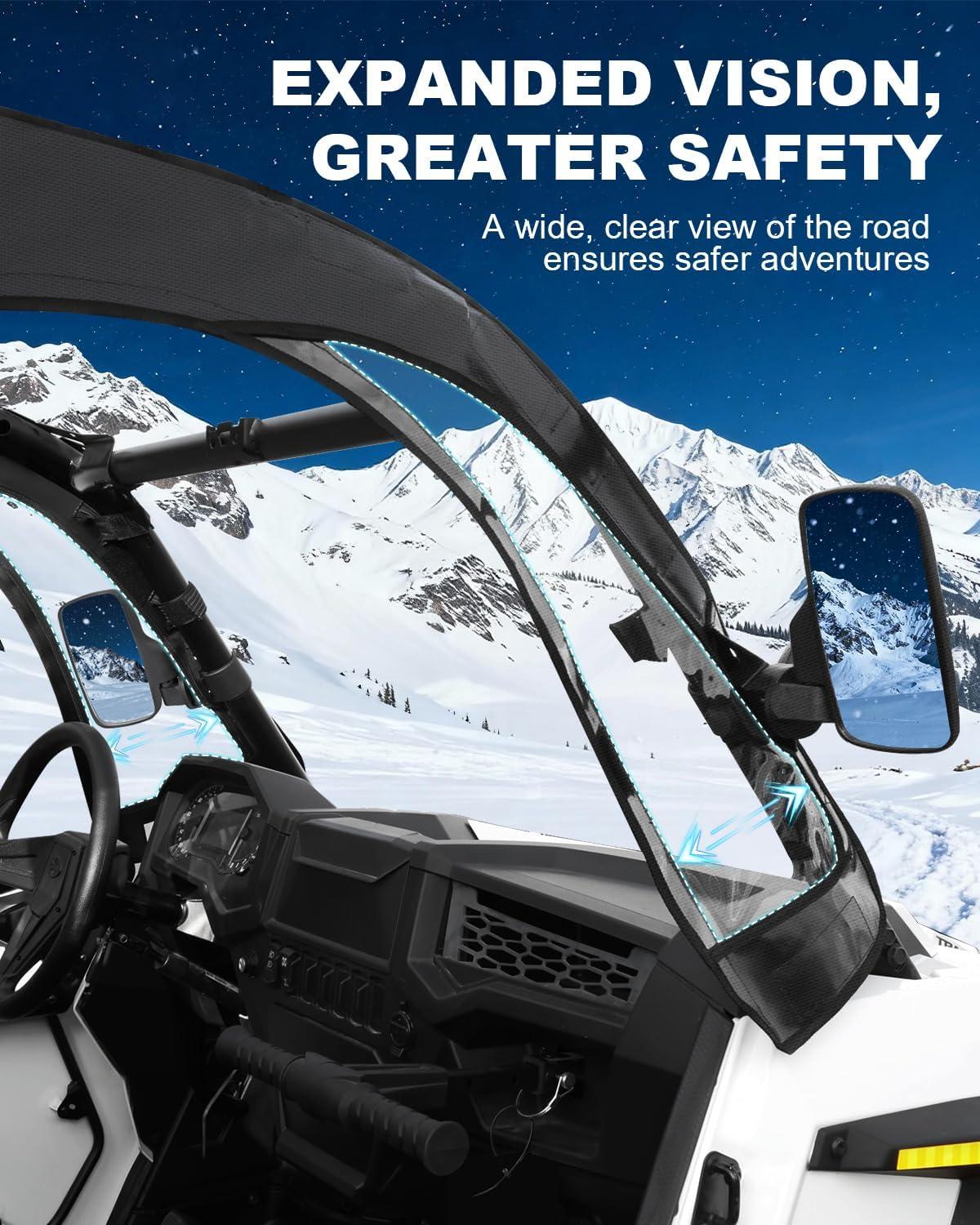 Enhanced Visibility & Safety: The 3-panel window design expands your field of view, while the cut-out design allows side mirrors to stay in place, keeping you safe and confident on every ride. Enjoy clearer sightlines and improved safety on the trails