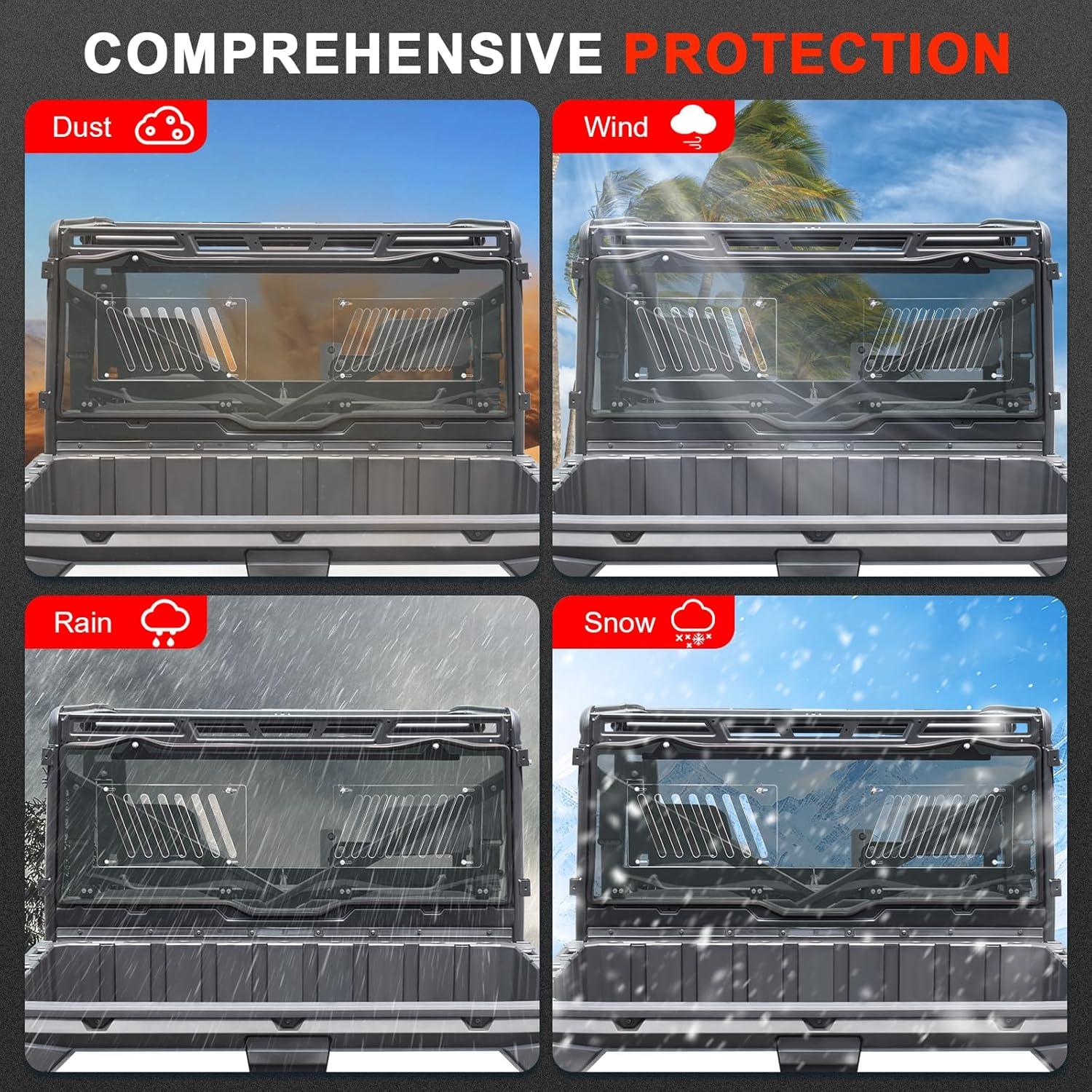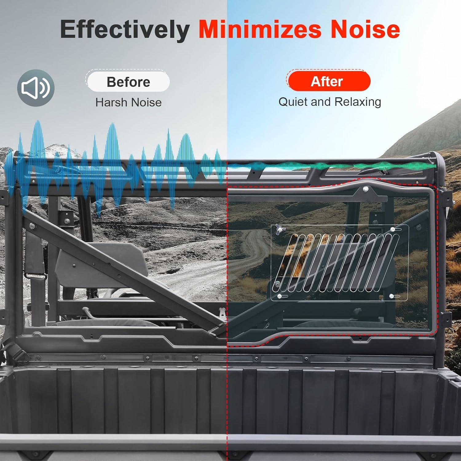 Ultimate Protection and Quiet Ride: The rear windshield protects your UTV's interior from mud, stones, and debris while maintaining a clean and dry cabin. The extended rubber seal enhances the fit and significantly reduces noise, providing a quieter and more peaceful driving experience